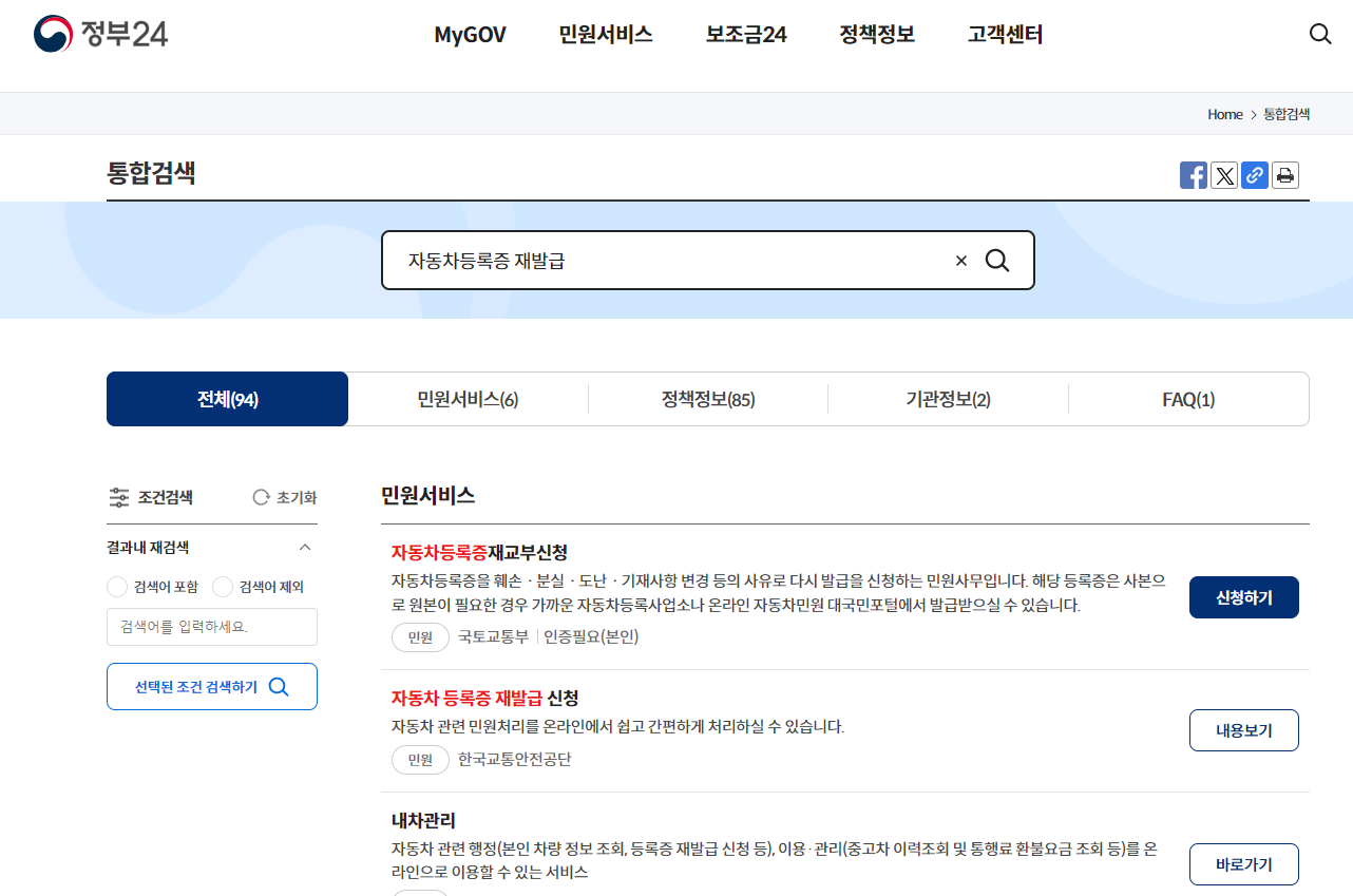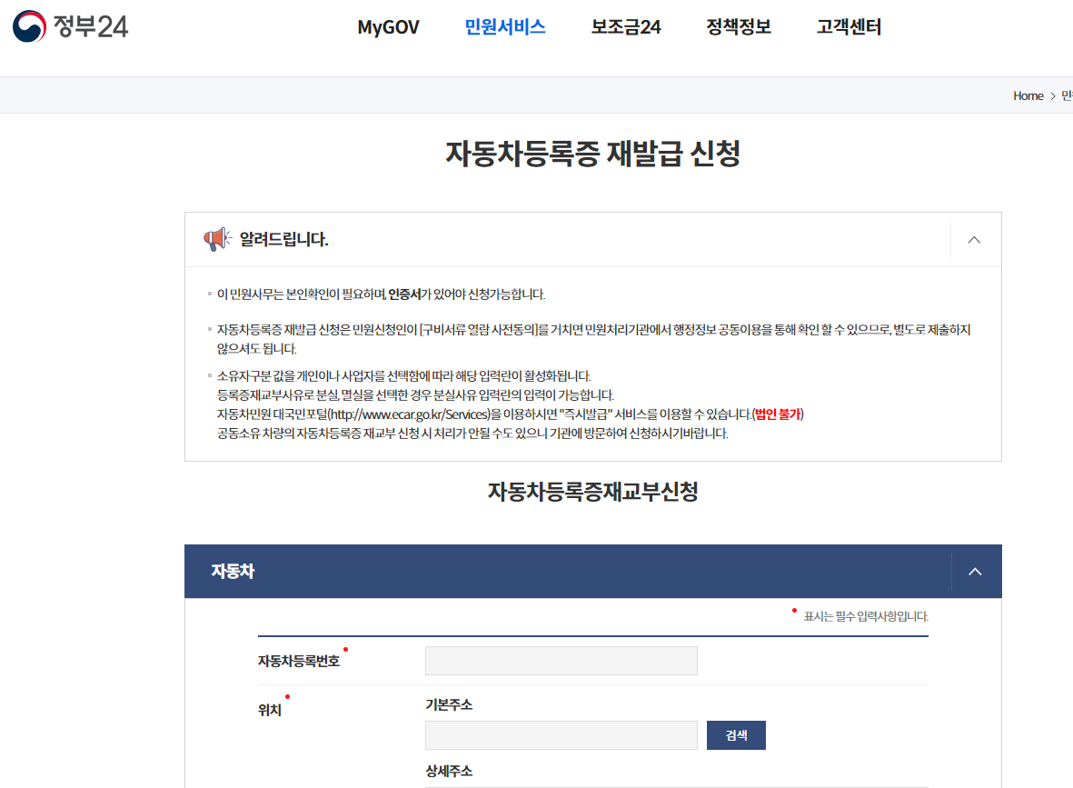 정부 24에서 하셔도 되고, 아래 자동차민원 대국민포털에서 진행하셔도 됩니다.